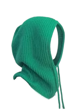 Balaclava de punto canalé en color verde, suave, cómoda y muy calentita. El complemento perfecto para los días fríos, aportando un toque tendencia y actual a cualquier look de invierno.