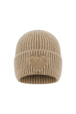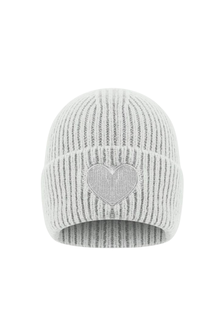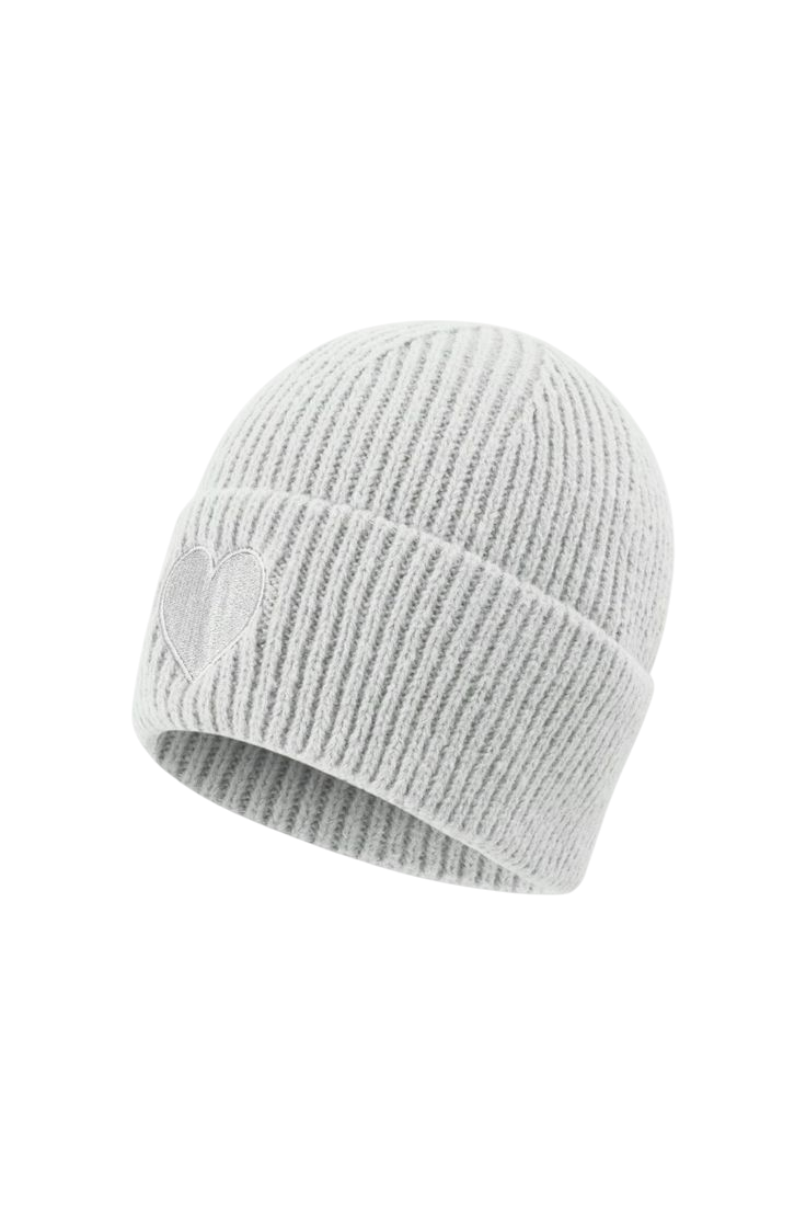 Gorro de canalé suave con corazón bordado, el accesorio perfecto para dar estilo y ternura a tus días fríos.