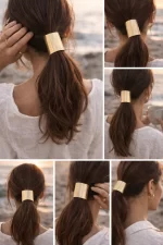 Este coletero de metal dorado aporta luz, elegancia y un aire sofisticado a cualquier look. Perfecto para recoger el cabello de forma sencilla pero con estilo, tanto en el día a día como en ocasiones especiales.