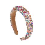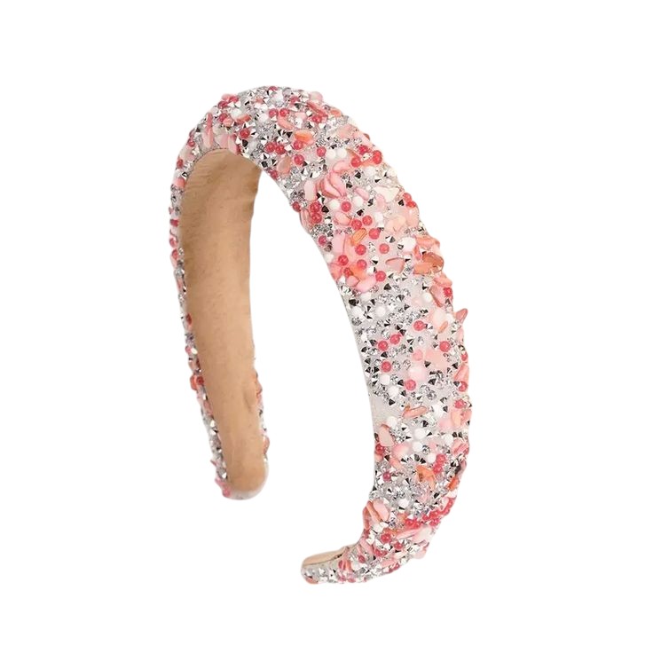 Diadema acolchada ligeramente alta con minerales y pequeños tupis de cristales facetados.
