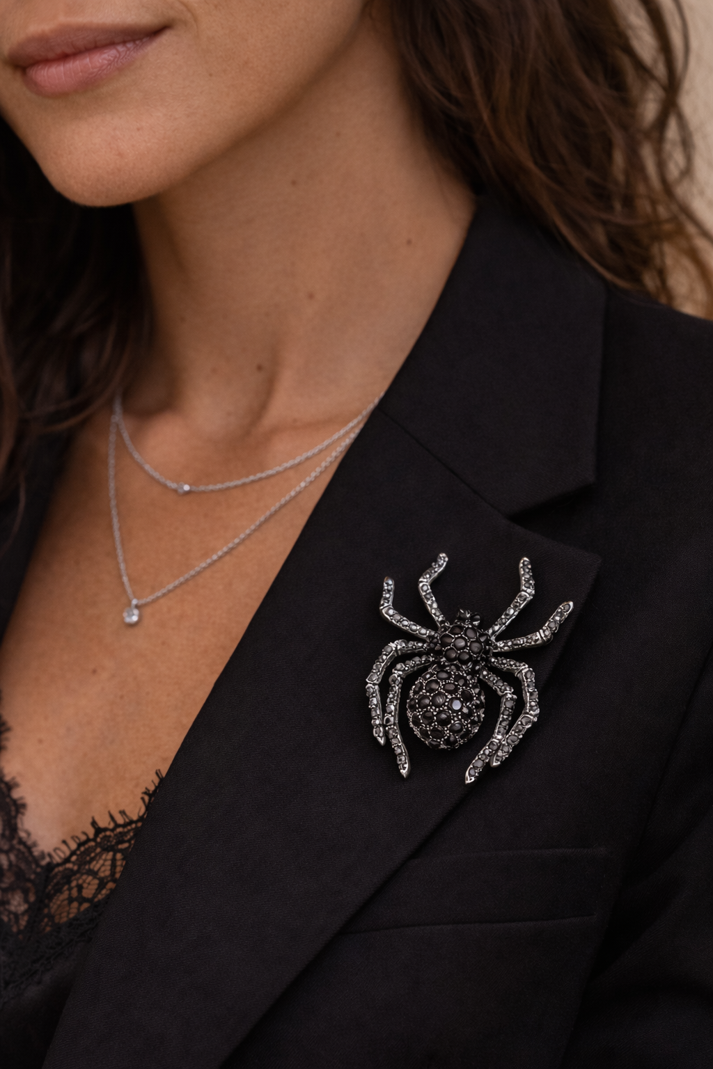 Este broche de strass con forma de araña destaca por su diseño impactante y su brillo sofisticado. Ideal para chaquetas, abrigos o bolsos, aporta un toque atrevido y elegante que no pasa desapercibido. Ligero, versátil y lleno de personalidad, es el accesorio perfecto para quienes buscan un detalle original que marque la diferencia.