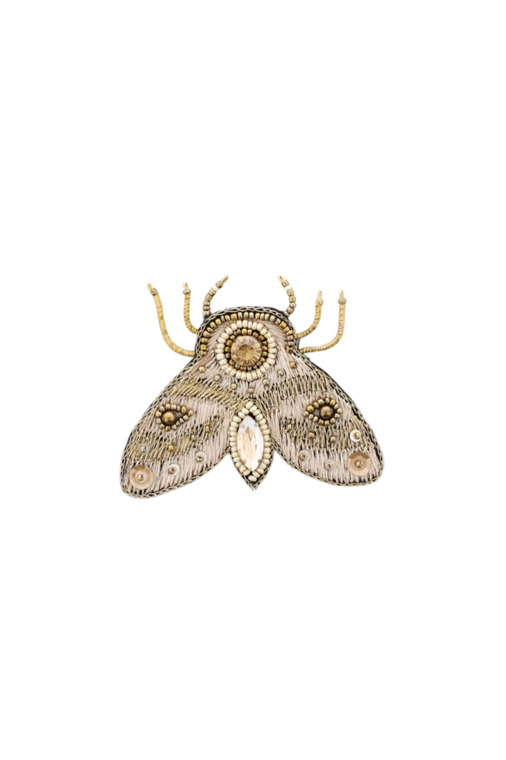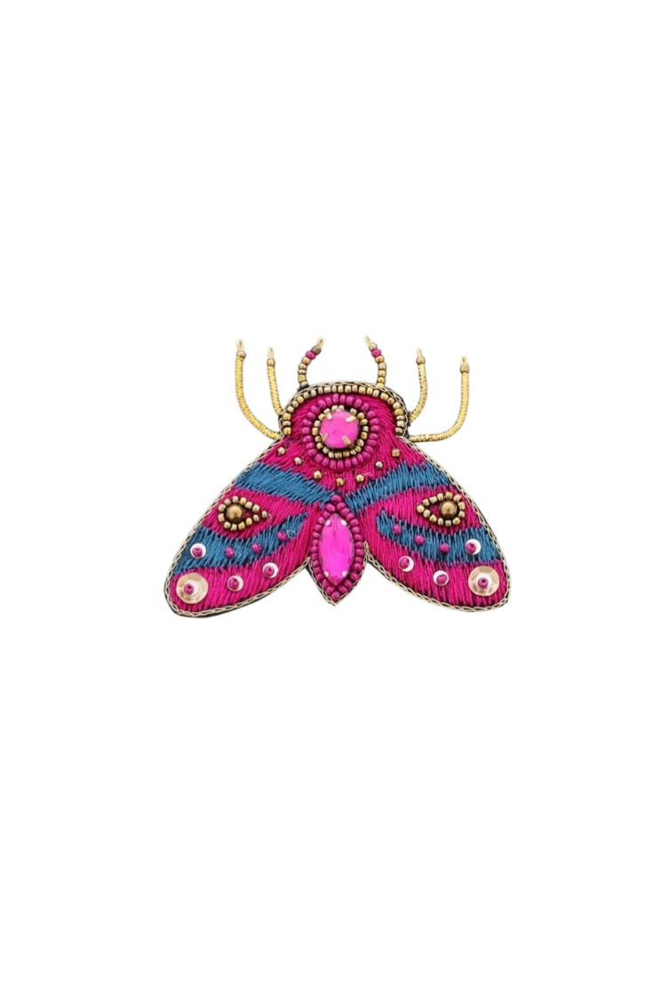 Este broche con forma de insecto destaca por su diseño artesanal bordado y con detalles de paillettes, que lo recrean de forma original y elegante. Un accesorio lleno de personalidad, perfecto para chaquetas, abrigos o bolsos, que aporta un toque divertido y exclusivo a cualquier conjunto.