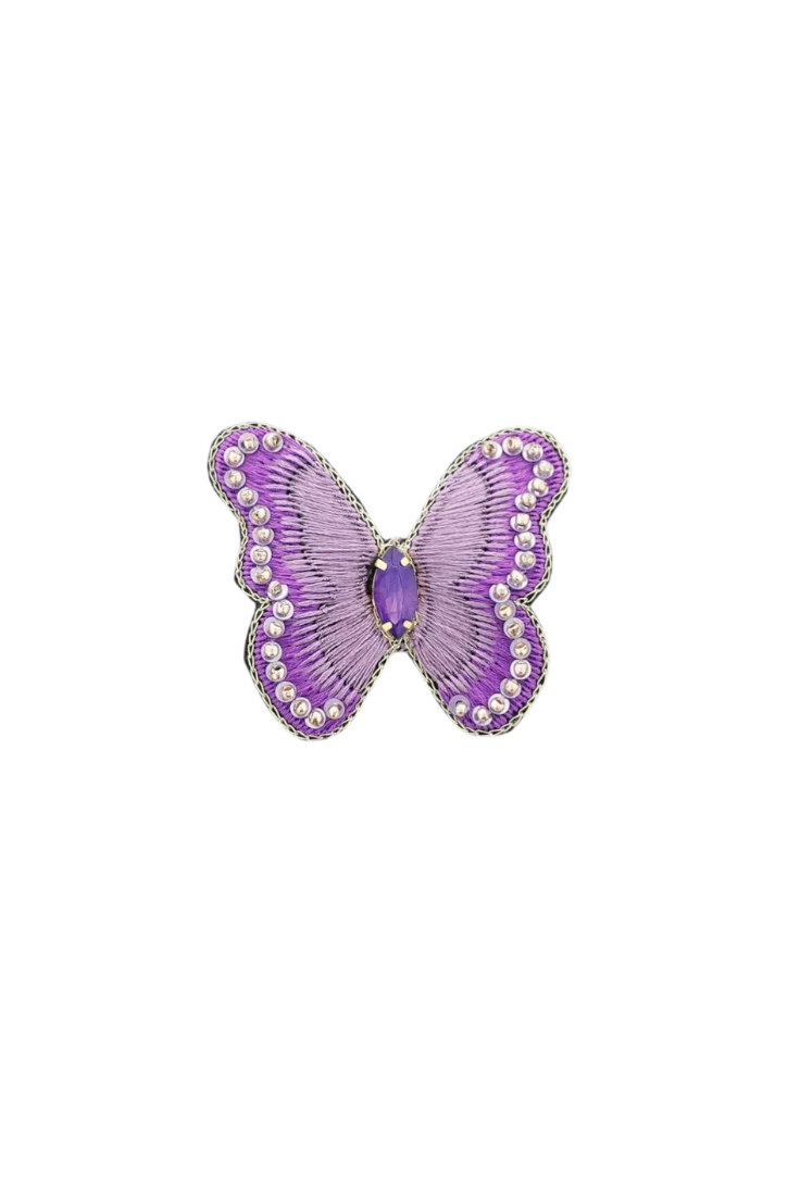 Este broche con forma de mariposa destaca por su diseño artesanal bordado y detalle de perlitas a tono en su contorno además de un paillette central. Un accesorio lleno de personalidad, perfecto para chaquetas, abrigos o bolsos, que aporta un toque divertido y exclusivo a cualquier conjunto. Ideal para amantes de los perros y de los detalles únicos.
