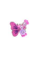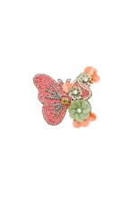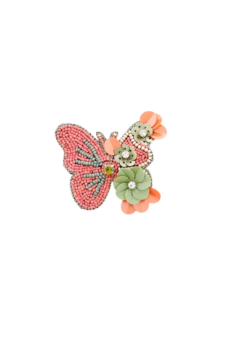 Este broche con forma de mariposa destaca por su diseño artesanal con abalorios y detalle de flores de distintos tamaños creadas con paillettes. Un accesorio lleno de personalidad, perfecto para chaquetas, abrigos o bolsos, que aporta un toque divertido y exclusivo a cualquier conjunto.