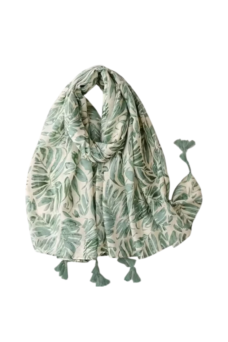 Las pequeñas borlas decorativas en los extremos añaden un detalle especial que aporta movimiento y personalidad al pañuelo.