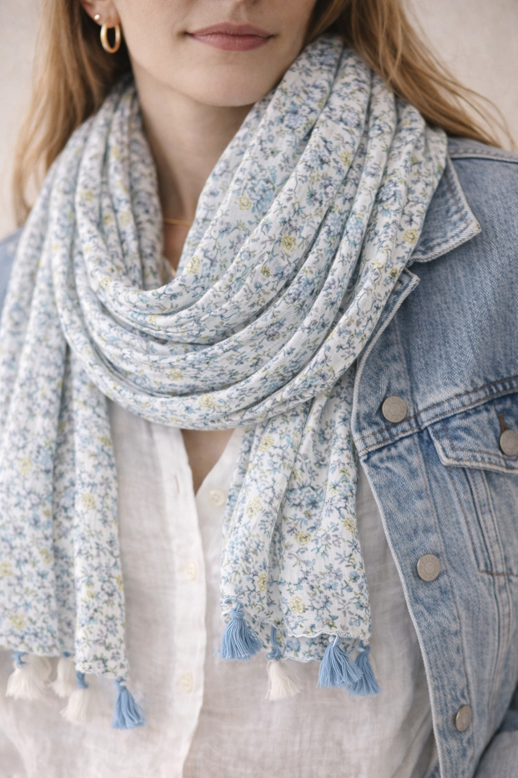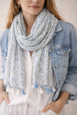 El pañuelo estampado mini flores con borlas es un accesorio ligero y delicado que aporta un toque natural y elegante a cualquier look. Su diseño combina un estampado floral de pequeñas flores con tonos suaves que crean un estilo fresco y femenino.