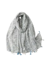 Las borlas decorativas en los extremos añaden movimiento y un detalle especial que realza el diseño del pañuelo.