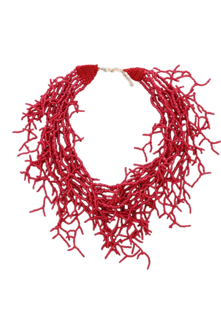 Collar de abalorios con diseño inspirado en corales, una pieza llamativa y llena de personalidad. Su forma orgánica y su textura aportan un toque fresco y natural que eleva cualquier outfit al instante.