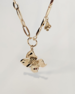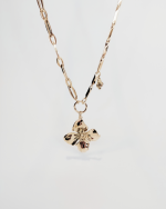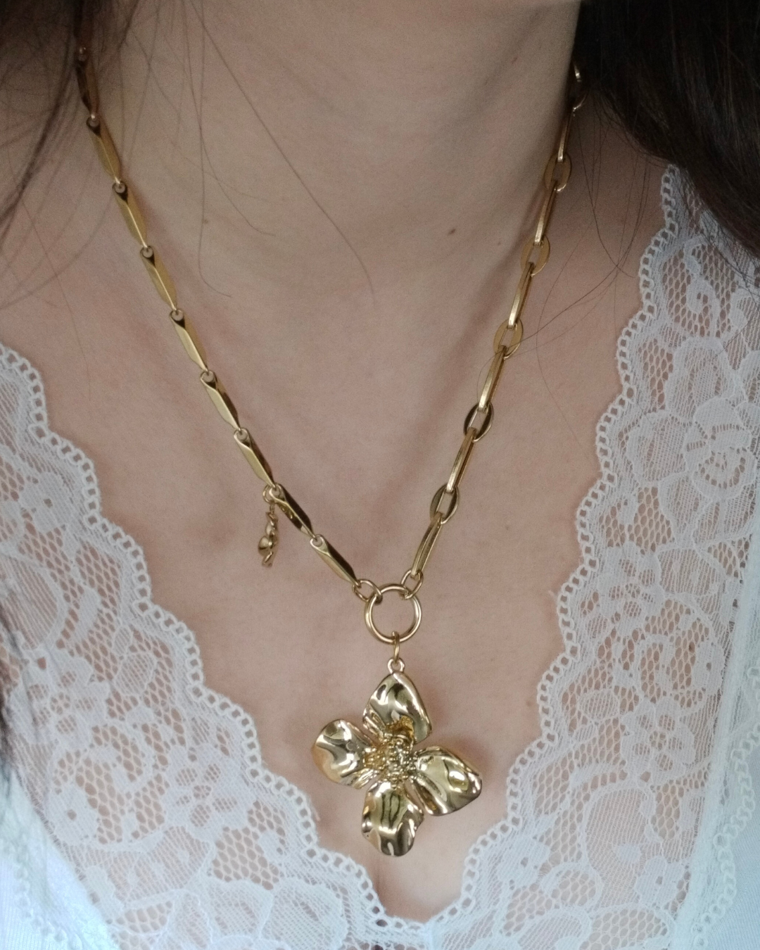 Collar de acero inoxidable. Eslabones grandes con colgante de flor.