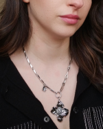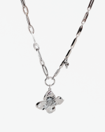 Collar de acero inoxidable. Eslabones grandes con colgante de flor.
