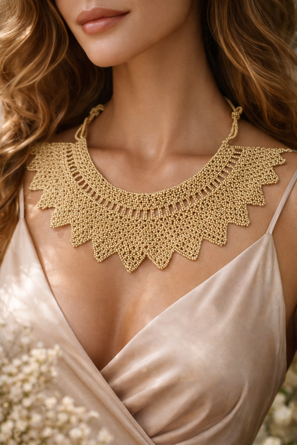 Collar tipo babero de beads hecho a mano, una pieza especial que combina artesanía, color y estilo. Su diseño llamativo y favorecedor aporta personalidad y transforma cualquier look, desde el más casual hasta el de invitada.