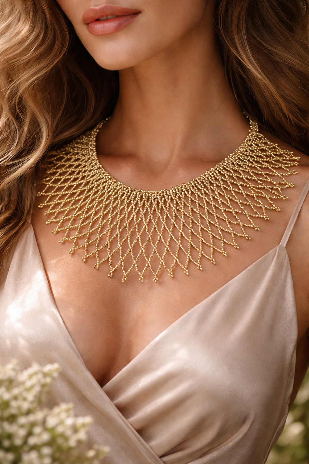 Collar tipo babero de beads hecho a mano, una pieza especial que combina artesanía, color y estilo. Su diseño llamativo y favorecedor aporta personalidad y transforma cualquier look, desde el más casual hasta el de invitada.