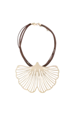 Collar de cordón con hoja ginkgo en metal, símbolo de fuerza, belleza y equilibrio. Una pieza ligera y elegante que aporta un toque natural y sofisticado a tu look. Perfecto para llevar a diario o para complementar estilismos especiales.