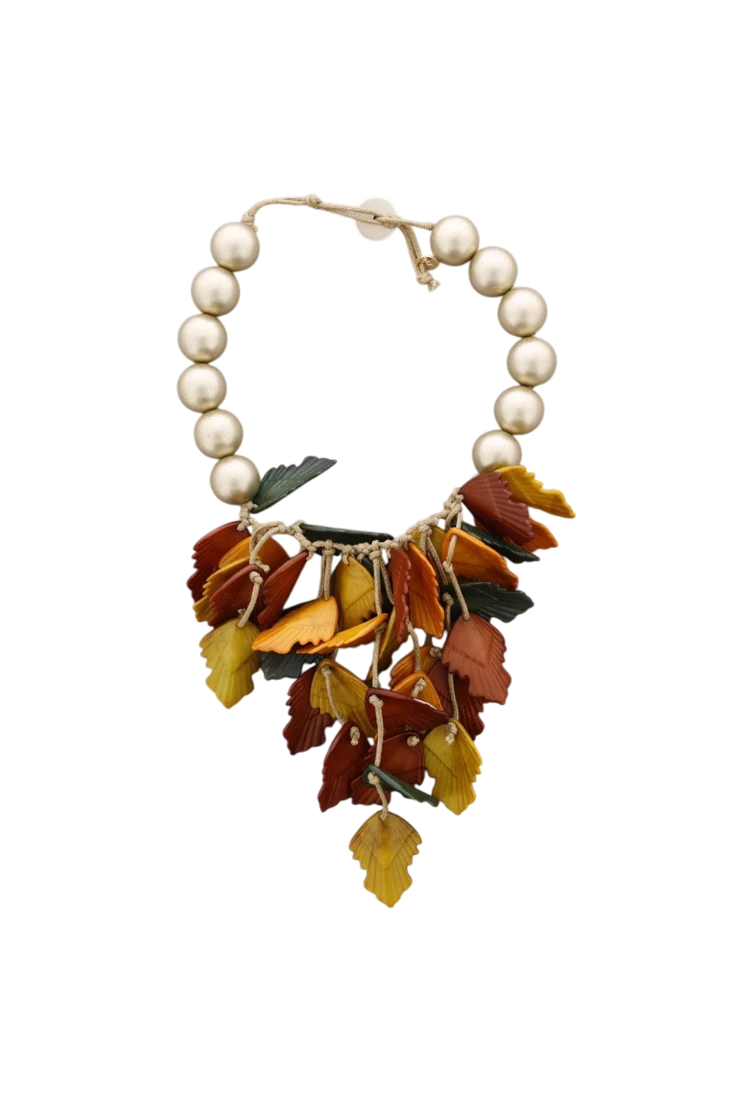 Collar de bolas en resina con detalle de hojas en diferentes tonos que aportan movimiento y color. Una pieza ligera, llamativa y muy fácil de combinar. Perfecto para darle un toque único y elegante a tu outfit, ya sea casual o más especial. 🌿