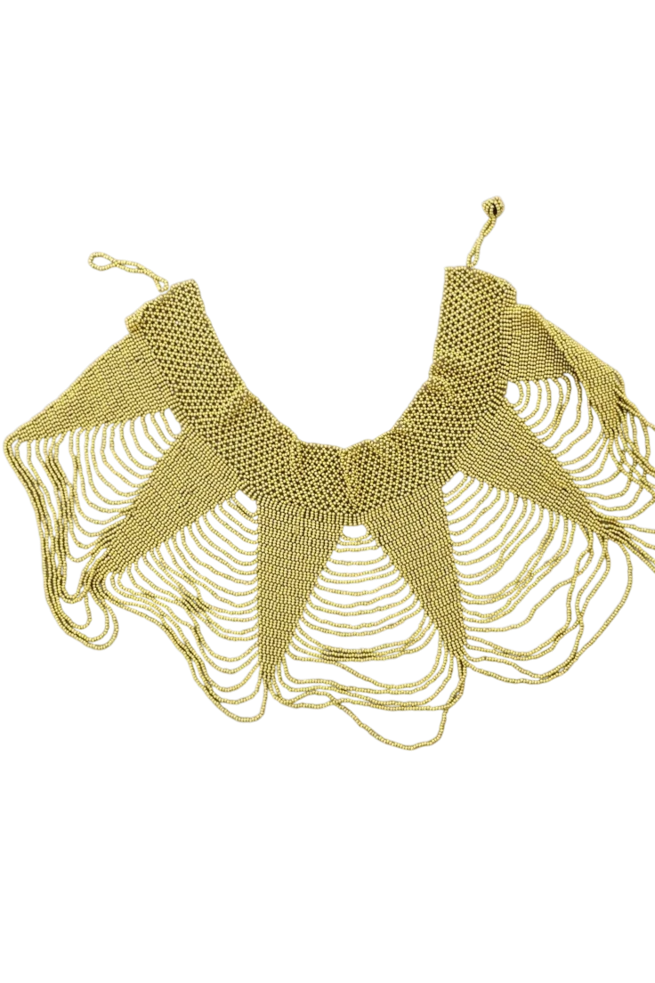 Collar tipo babero maxi de beads hecho a mano, una pieza especial que combina artesanía, color y estilo. Su diseño llamativo y favorecedor aporta personalidad y transforma cualquier look, desde el más casual hasta el de invitada.