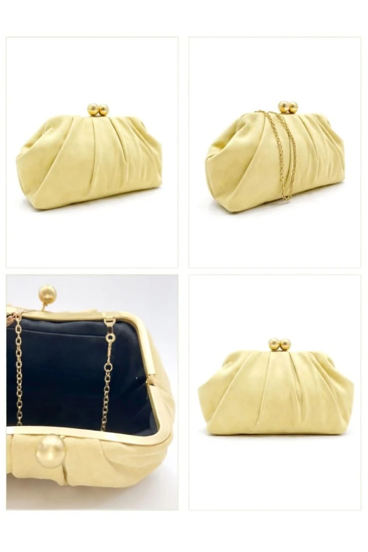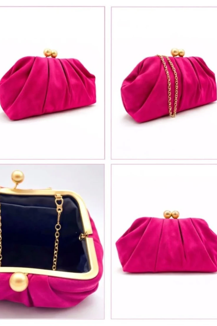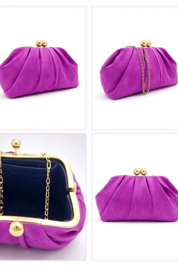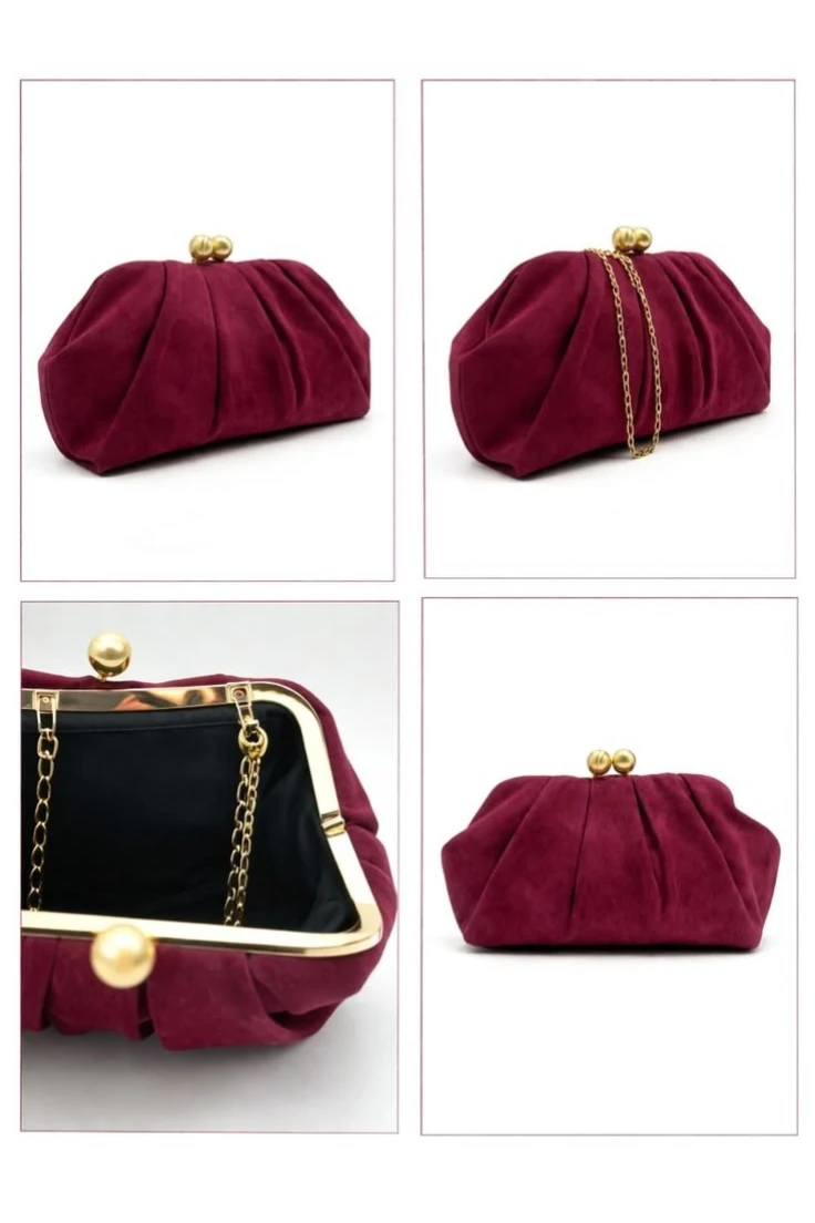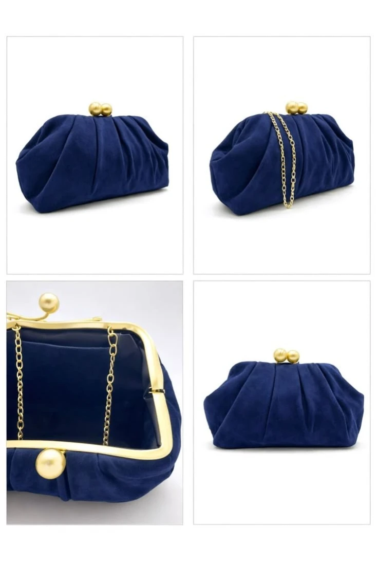 El bolso clutch fruncido elegante destaca por su diseño sofisticado y su cierre metálico decorativo. Un complemento ideal para estilismos de invitada y ocasiones especiales.