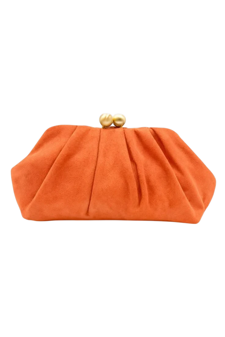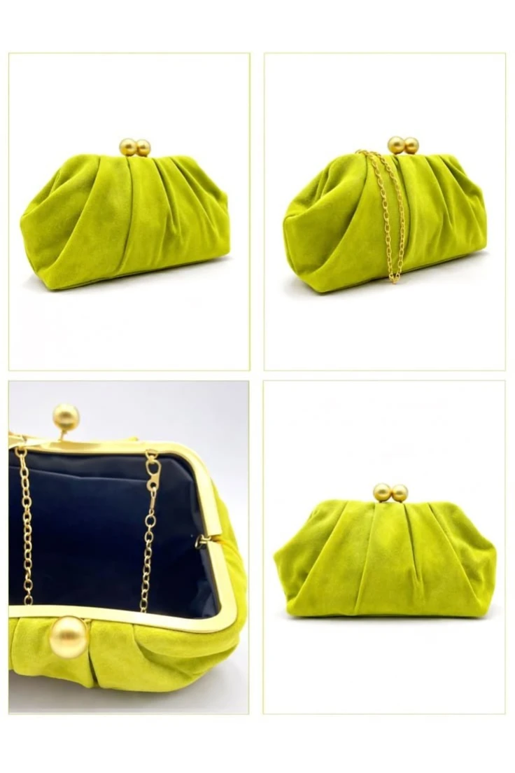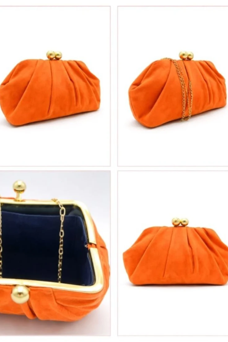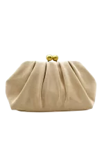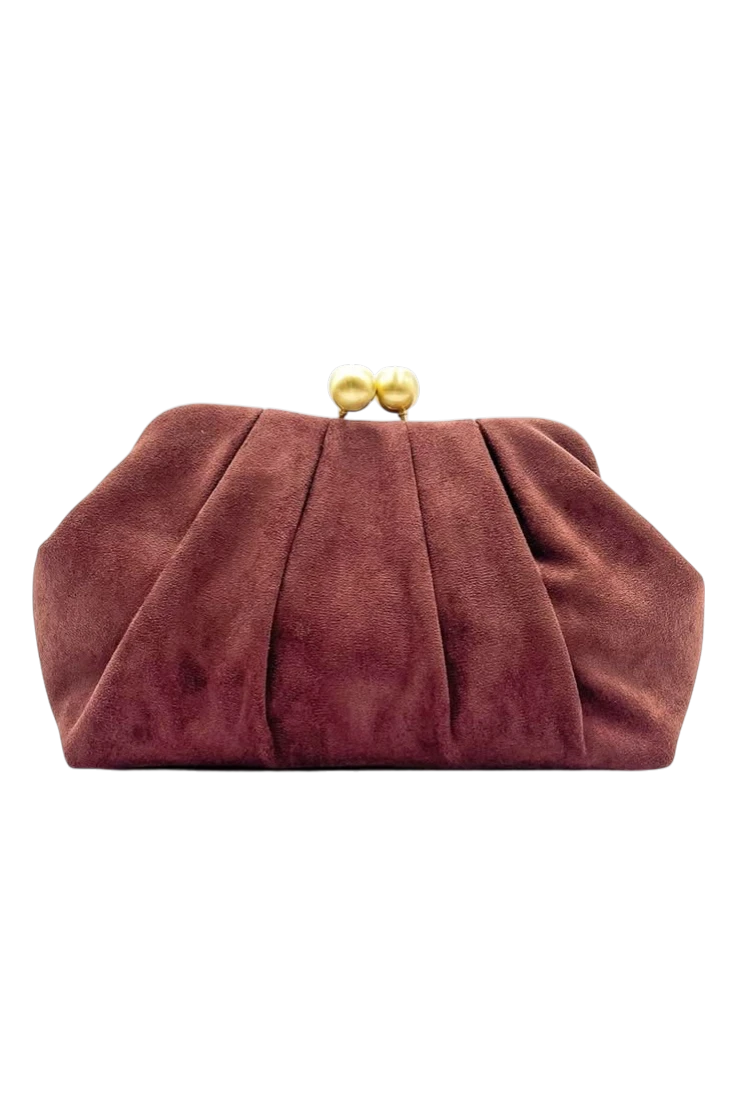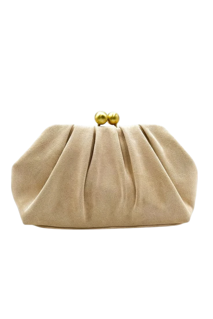 El bolso clutch fruncido elegante destaca por su diseño sofisticado y su cierre metálico decorativo. Un complemento ideal para estilismos de invitada y ocasiones especiales.