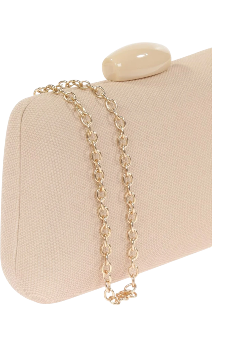 Bolso de fiesta en polipiel con boquilla en resina de color que aporta un toque distintivo y sofisticado. Un complemento original y elegante, perfecto para elevar tus looks de eventos, bodas y noches especiales.