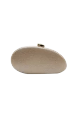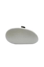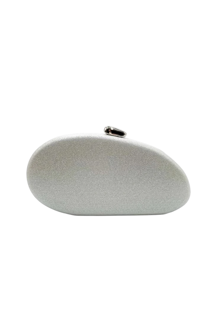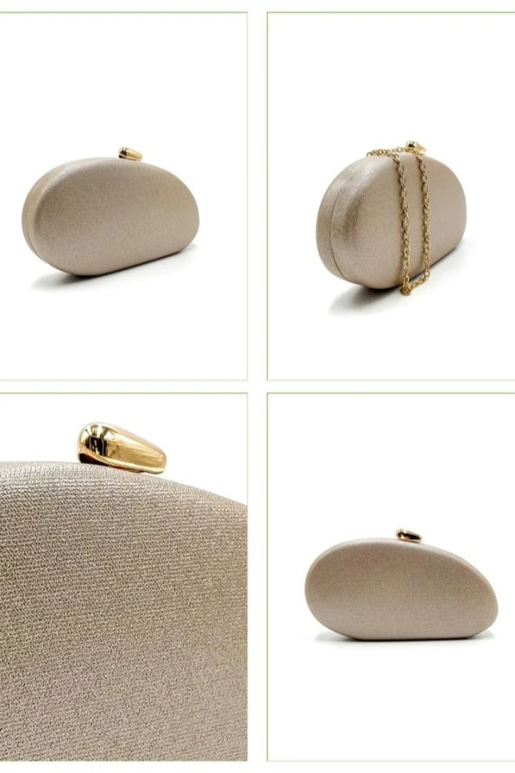 El bolso clutch ovalado champagne destaca por su diseño elegante y minimalista. Un complemento sofisticado ideal para eventos, bodas o estilismos de invitada.