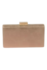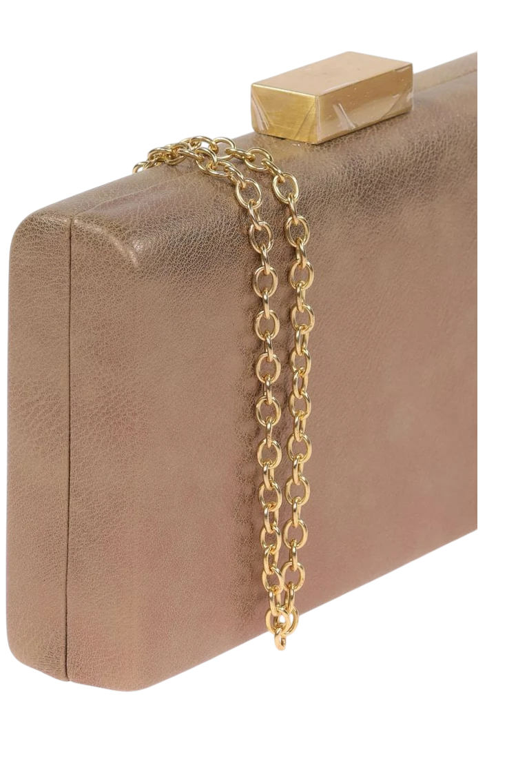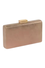 Clutch de polipiel en color bronce con boquilla en acabado dorado mate que aporta un toque sofisticado y actual. Un bolso de fiesta elegante y versátil, perfecto para elevar tus looks de eventos, bodas y noches especiales.