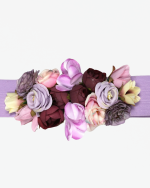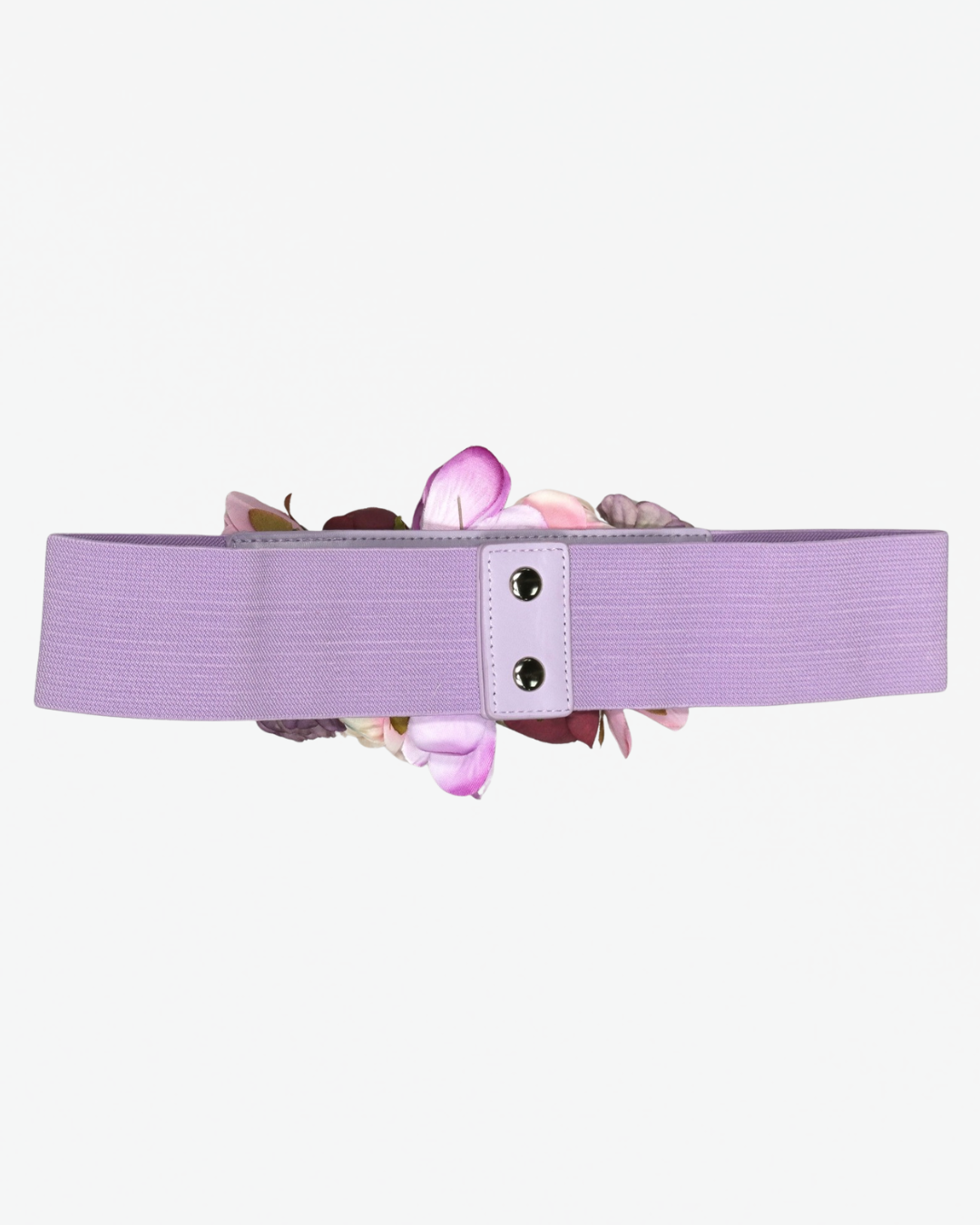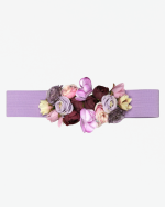 Cinturón elástico de flores artificiales de alta calidad. Cierre trasero con botones a presión.