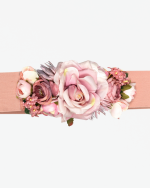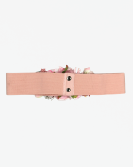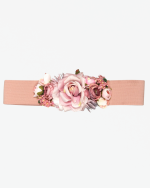 Cinturón elástico de flores artificiales de alta calidad. Cierre trasero con botones a presión.