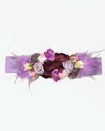 Cinturón flores y plumas lila