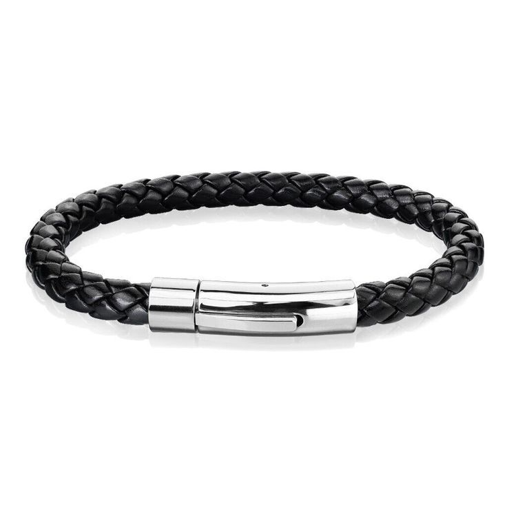 PULSERA MEN CUERO TRENZADO ANCHO ACERO