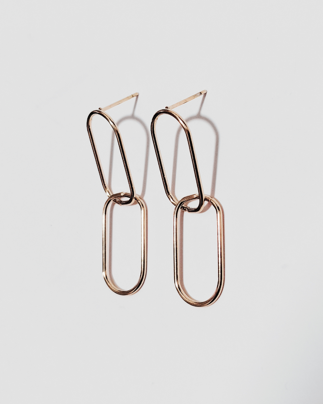 Pendientes de acero inoxidable con dos eslabones entrelazados.