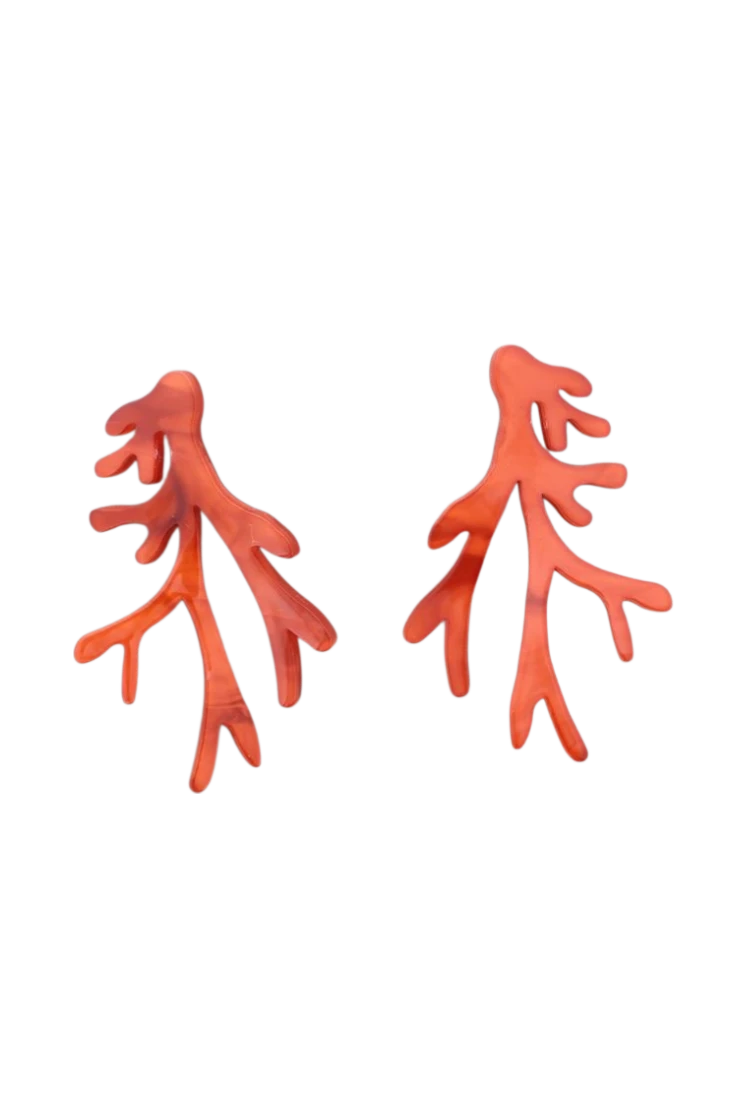 Pendientes de resina con forma de coral, un diseño moderno y fresco que los convierte en una pieza llamativa pero fácil de combinar.