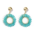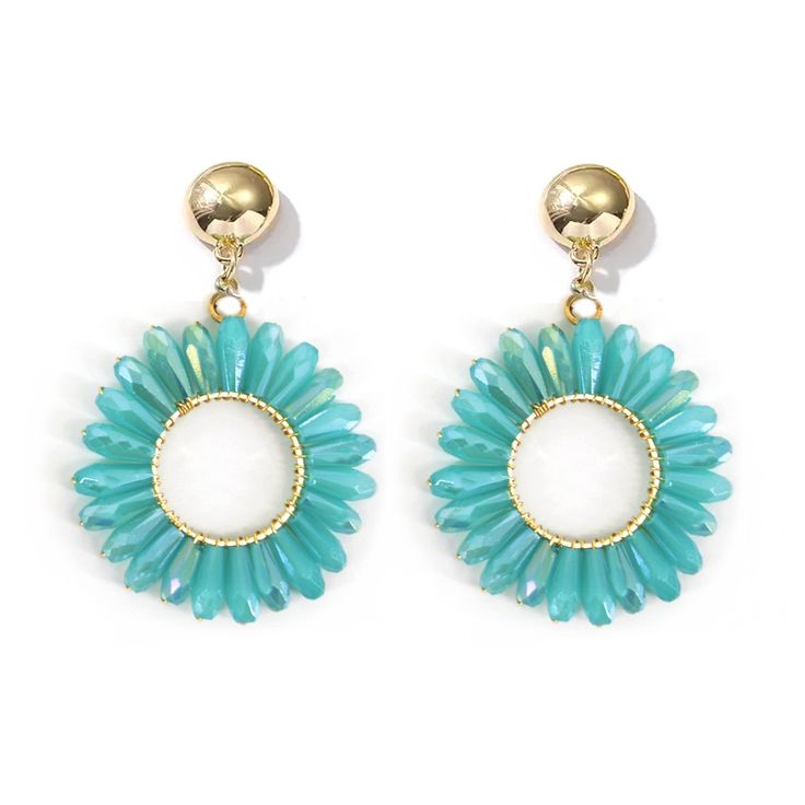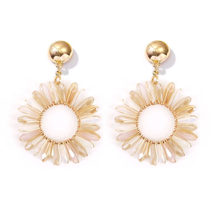 Pendientes semicolgantes con botón de sujeción dorado y circulo con pequeños cristales en forma circular.