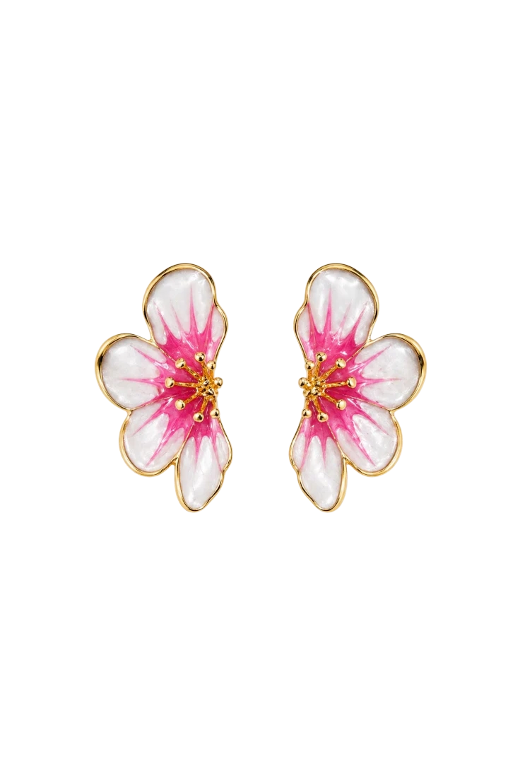 Los pendientes flor esmaltada rosa efecto nácar combinan diseño floral y acabados luminosos en una pieza delicada y favorecedora. Su forma orgánica inspirada en la naturaleza aporta frescura y feminidad, mientras que el contraste entre el esmalte rosa y el efecto nácar crea un resultado elegante y actual.