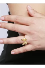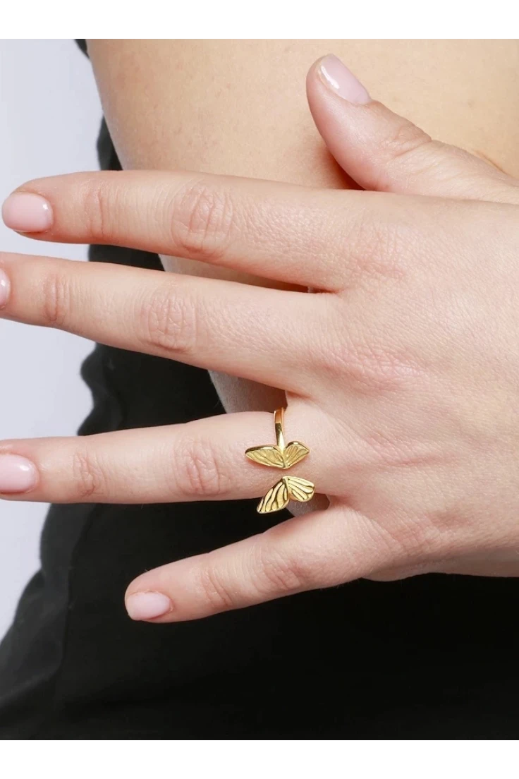 Este anillo con forma de mariposas destaca por su diseño delicado y elegante, elaborado en plata 925 y disponible también en plata con baño de oro. Inspirado en la naturaleza, aporta un toque femenino y ligero, ideal para el uso diario o para completar looks más especiales. Una joya versátil y atemporal que combina simbolismo, estilo y acabado refinado.