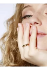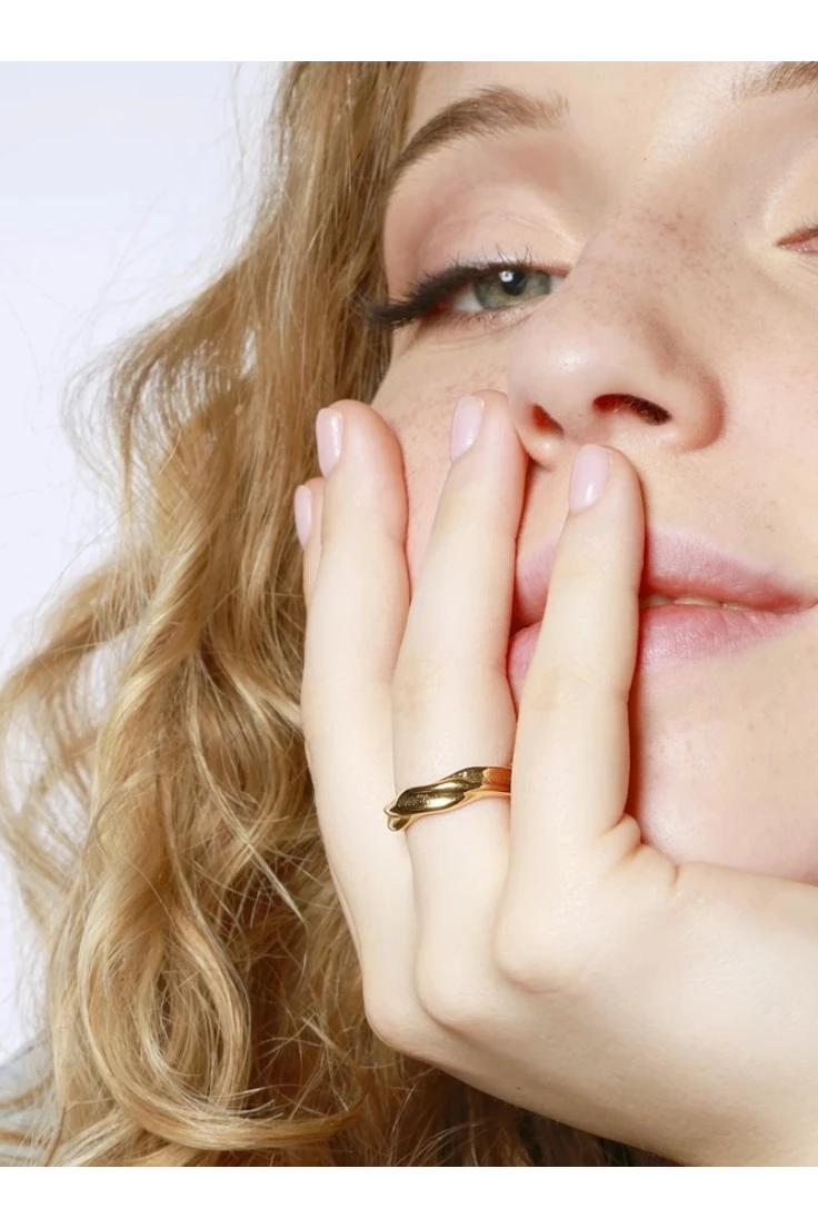 Este anillo tipo alianza con una sutil torsión destaca por su diseño limpio y contemporáneo. Fabricado en acero inoxidable y disponible también en acero con baño de oro 18K, combina resistencia, comodidad y estilo. Su ligera torsión aporta un detalle diferenciador sin perder elegancia, convirtiéndolo en una pieza versátil y atemporal, ideal para el uso diario o para completar looks más sofisticados.