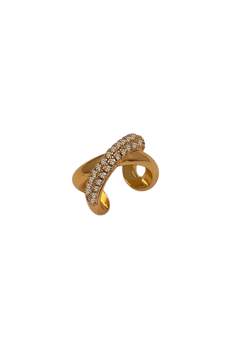 El ear cuff cruzado con circonitas para mitad de la oreja es una pieza delicada y moderna que aporta luz y estilo a cualquier combinación de pendientes. Su diseño envolvente con líneas cruzadas y acabado brillante crea un efecto elegante y sofisticado.