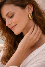 Los pendientes aro dorado texturizado destacan por su diseño elegante con relieve que aporta luz y carácter al rostro. Un modelo versátil ideal para completar looks tanto diarios como más sofisticados.