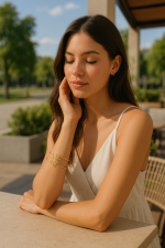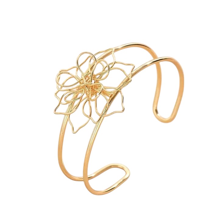 Brazalete ajustable abierto con detalle central de flor de la biznaga.
