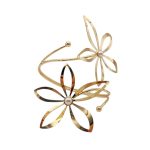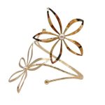 Brazalete ajustable para el antebrazo con diseño de doble flor con detalle de perla.